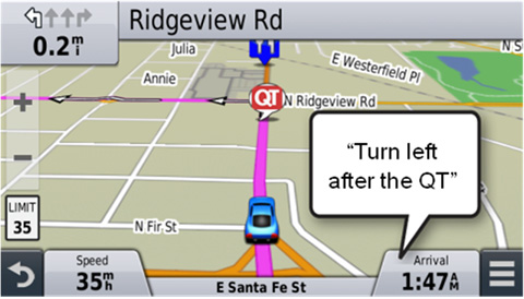 Urządzenie nüvi 57LM zapewnia nowy wymiar „szczegółowych, wymawianych wskazówek” dzięki funkcji Garmin Real Directions, czyli łatwym w zrozumieniu wskazówkom dojazdu, które prowadzą niczym przyjaciel, wykorzystując rozpoznawalne punkty orientacyjne, budynki i sygnalizację świetlną. Koniec ze stresem podczas prób odczytania nazw ulic. Zamiast tego słuchaj wyraźnie wymawianych wskazówek, na przykład „Skręć w lewo za stacją benzynową”.