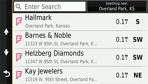 Urządzenie nüvi 57LM ma pole wyszukiwania, które umożliwia wyszukiwanie adresów i milionów punktów szczególnych w jednym miejscu. Wystarczy wprowadzić kategorię (np. „pizza”), cały adres („ul. Polna 123, Katowice”) lub nazwę („Starbucks”), a urządzenie nüvi 57LM szybko wyświetli rezultaty wyszukiwania.