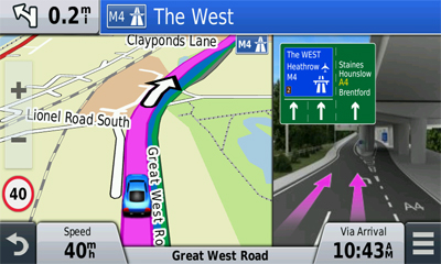 Aktywny asystent pasa ruchu z komunikatami głosowymi przygotowuje kierowcę do bezpiecznego korzystania ze zjazdów i skrzyżowań. Gdy zbliżasz się do takiego miejsca, animowany model wskazuje prawidłowy pas ruchu dla wybranej trasy, a przyjemny głos oferuje dodatkową pomoc. Funkcja BirdsEye zapewnia szczegółowy widok skrzyżowań, jakby patrzyło się na nie z góry. Natomiast funkcja PhotoReal realistycznie przedstawia skrzyżowania wraz z otaczającym je krajobrazem. Jasne, kolorowe strzałki wskazują właściwy pas jazdy, a urządzenie nüviCam pokazuje faktyczne znaki drogowe pojawiające się na trasie.