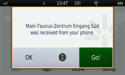 Aplikacja Smartphone Link w urządzeniu nüviCam pozwala także zgłosić swoją pozycję w serwisie Foursquare i sprawdzić szczegółowe informacje dotyczące konkretnego punktu szczególnego, takie jak oceny innych osób, zakresy cenowe i godziny pracy.