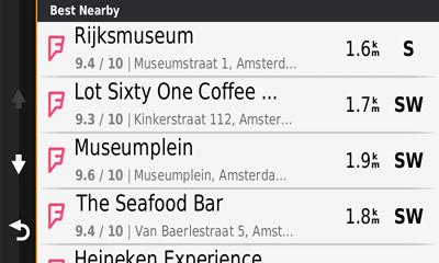 Urządzenie nüviCam LMT-D ułatwia wyszukiwanie adresów i milionów punktów szczególnych, takich jak firmy, sklepy, restauracje i inne miejsca. W naszej bazie danych punktów szczególnych znajdują się również dokładne i przydatne informacje pochodzące z serwisu Foursquare. Dzięki temu podczas wyszukiwania, na górze listy wyników pojawiają się najlepsze trafienia z bazy danych Foursquare. To wspaniały sposób na odkrywanie nowych i popularnych restauracji, sklepów i wielu innych miejsc.