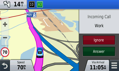 Zsynchronizuj urządzenie obsługujące funkcję Bluetooth® (np. smartfon) z urządzeniem nüviCam, aby prowadzić rozmowy w trybie głośnomówiącym, wykorzystującym zintegrowany mikrofon i głośnik. Włóż telefon bezpiecznie do schowka, kieszeni lub torebki i wykonuj oraz odbieraj połączenia bez odrywania rąk od kierownicy i wzroku od drogi.