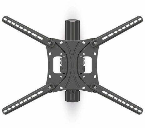 Uchwyt oferuje wyjątkową elastyczność w ustawieniu telewizora. Minimalny dystans od ściany wynosi zaledwie 7 cm, a maksymalny 102 cm, co pozwala na idealne dopasowanie do potrzeb użytkownika. Posiada trzy punkty obrotu, umożliwiające obrót o 180° w pobliżu ściany, złożenie o 360° oraz regulację nachylenia od 0° do 15°.