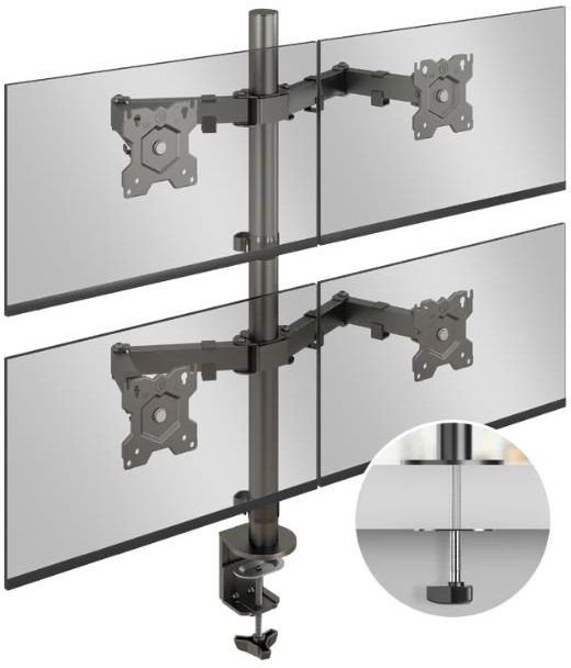 Konstrukcja pozwalająca na montaż czterech monitorów jest idealnym wyborem dla prawdziwych maniaków multitaskingu, którzy potrzebują pracować na wielu ekranach jednocześnie. Świetnie nada się do bardziej zaawansowanych zadań poprawiając nie tylko ergonomię, ale i wydajność pracy.