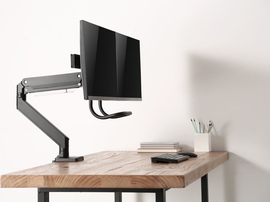 Uchwyt biurkowy umożliwia przymocowanie go do blatu za pomocą zacisku. Taki rodzaj uchwytu jest skierowany przede wszystkim do osób chcących zachować miejsce na biurku, co pomoże poprawić nie tylko ergonomię pracy, ale również zapewni czystość i nienaganną estetykę przy stanowisku komputerowym.