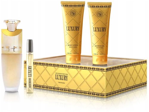 Zestaw New Brand Women Luxury 4 to doskonała oferta dla kobiet pragnących otulić się luksusowym aromatem oraz zadbać o swoją skórę. Ta wyjątkowa kolekcja łączy elegancję z funkcjonalnością, sprawiając, że każda chwila staje się niezapomniana.