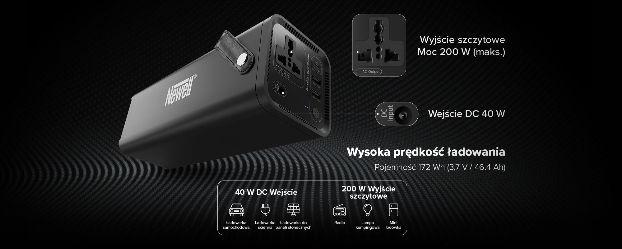 Power Station Newell Asvala to urządzenie, które idealnie sprawdzi się wszędzie tam, gdzie dostęp do tradycyjnych gniazdek elektrycznych będzie ograniczony. Akumulator o imponującej pojemności 46400 mAh deklasuje popularne power banki, zapewniając jeszcze bardziej komfortową pracę z wieloma urządzeniami wykorzystywanymi na co dzień. Co potrafi stacja ładująca Newell Asvala? W pełni naładowane urządzenie pozwoli ośmiokrotnie wskrzesić Twojego drona! 46400 mAh to również od 3 do 5 pełnych ładowań laptopa. Jedno urządzenie wystarczy, aby na kilka dni uniezależnić się od gniazdek elektrycznych!