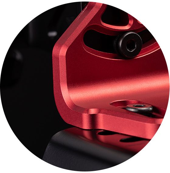 Anodowane wykończenie aluminium 6061 i wysokiej jakości malowana proszkowo konstrukcja ze stali węglowej nie tylko zapewnia niezrównaną sztywność przy zerowej elastyczności, ale także oferuje standardy jakości dla perfekcjonistów wyścigowych. Idealne ulepszenie dla użytkowników z napędem przednim z napędem bezpośrednim