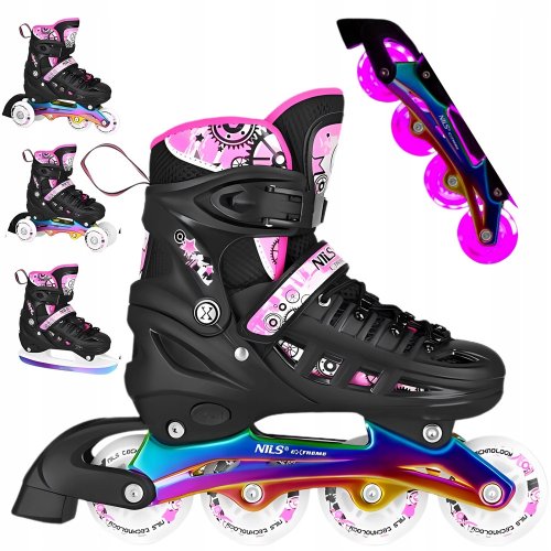 NH10905 4w1 ŁYŻWOROLKI LED RÓŻOWE Z WYM. PŁOZĄ HOKEJOWĄ RAINBOW ROZM. M(35-38) NILS EXTREME