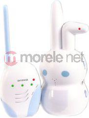 Elektroniczna niania w kolorze biało-niebieskim, z możliwością działania na 2 kanałach, regulacją poziomu głośności oraz o zasięgu działania do 100 m na wolnej przestrzeni. Model ten zasilany jest baterią 9V lub zasilaczem 9V/150mA. Cechuje się również sygnalizacją dźwiękową i świetlną.
