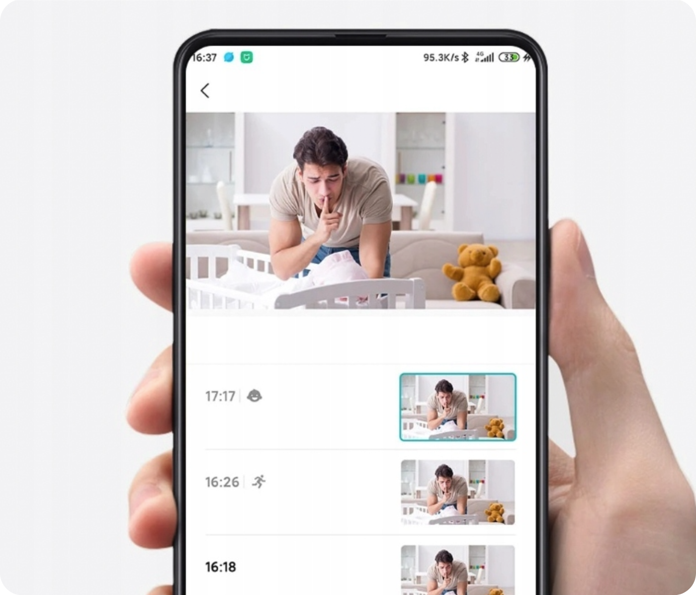 Dzięki dedykowanej aplikacji mobilnej dostępnej na iOS i Android, masz pełną kontrolę nad ustawieniami niani oraz dostęp do obrazu na żywo i nagrań zapisanych na karcie microSD do 128GB lub w chmurze (opcja dodatkowo płatna).