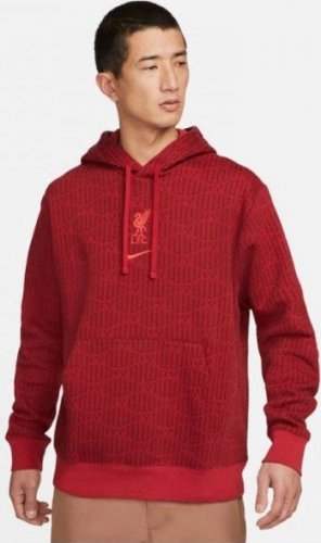 Bluza Nike Liverpool FC Club Home M DM2971-608 Właściwości: - bluza marki Nike - doskonała na co dzień - dla mężczyzn - model wkładany przez głowę - wbudowany kaptur - ściągacze na rękawach - luźny krój - logo producenta Materiał: - bawełna - poliester Kolor: - czerwony