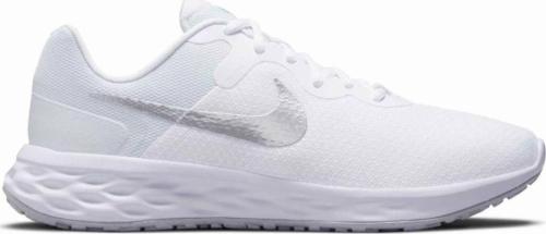 Buty damskie Nike Revolution 6 Next białe DC3729 101 Właściwości: - Damskie buty do biegania Nike Revolution gwarantują płynny ruch i dynamiczny krok. - Konstrukcja cholewki z przewiewnej dzianiny, zapewnia wsparcie i wygodę podczas biegu. - Laminowany obszar wokół sznurowania i pięt. - Miękka wyściółka z piankową wkładką. - Piankowa podeszwa. - Gumowa warstwa zewnętrzna z bieżnikiem. - Minimalistyczny model z logo Swoosh.