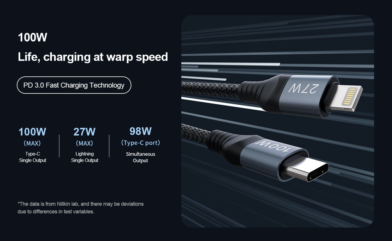 Nillkin Kabel Nillkin Data Cable DualPower 2w1 USB-C PD 3.0 100W, Lightning PD 27W black