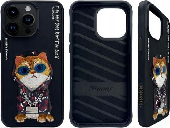 Nimmy case iPhone 15 Pro Max 6.7" black/black Glasses Cool Cat