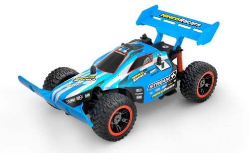 Ninco Stream + to zdalnie sterowany samochód typu Buggy w skali 1:18, który gwarantuje niezapomniane chwile zabawy zarówno dla dzieci, jak i dla początkujących miłośników technologii RC. Jego długość wynosząca 26,5 cm oraz maksymalna prędkość do 15 km/h czynią go idealnym wyborem do zabawy w terenie.