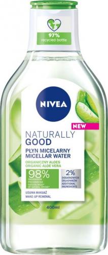 NIVEA Naturally Good Płyn Micelarny z Organicznym Aloesem. Zawiera *98% składników pochodzenia naturalnego, 2% dla stabilności i bezpieczeństwa formuły. Skutecznie usuwa makijaż oraz wszelkie zanieczyszczenia. Formuła wzbogacona o organiczny aloes łagodnie oczyszcza, odświeża i nawilża skórę. Wszystkie typy cery. Przebadany dermatologicznie i okulistycznie. *Składniki pochodzenia naturalnego linii NATURALLY GOOD są czerpane prosto z natury i zachowują po przetworzeniu ponad 50% swojej struktury molekularnej, czyli stanu naturalnego. NIVEA® wykorzystuje składniki inspirowane naturą, aby stworzyć szczególnie skuteczne produkty. Wydobywają one naturalne piękno Twojej skóry, abyś mogła wyglądać i czuć się wyjątkowo.