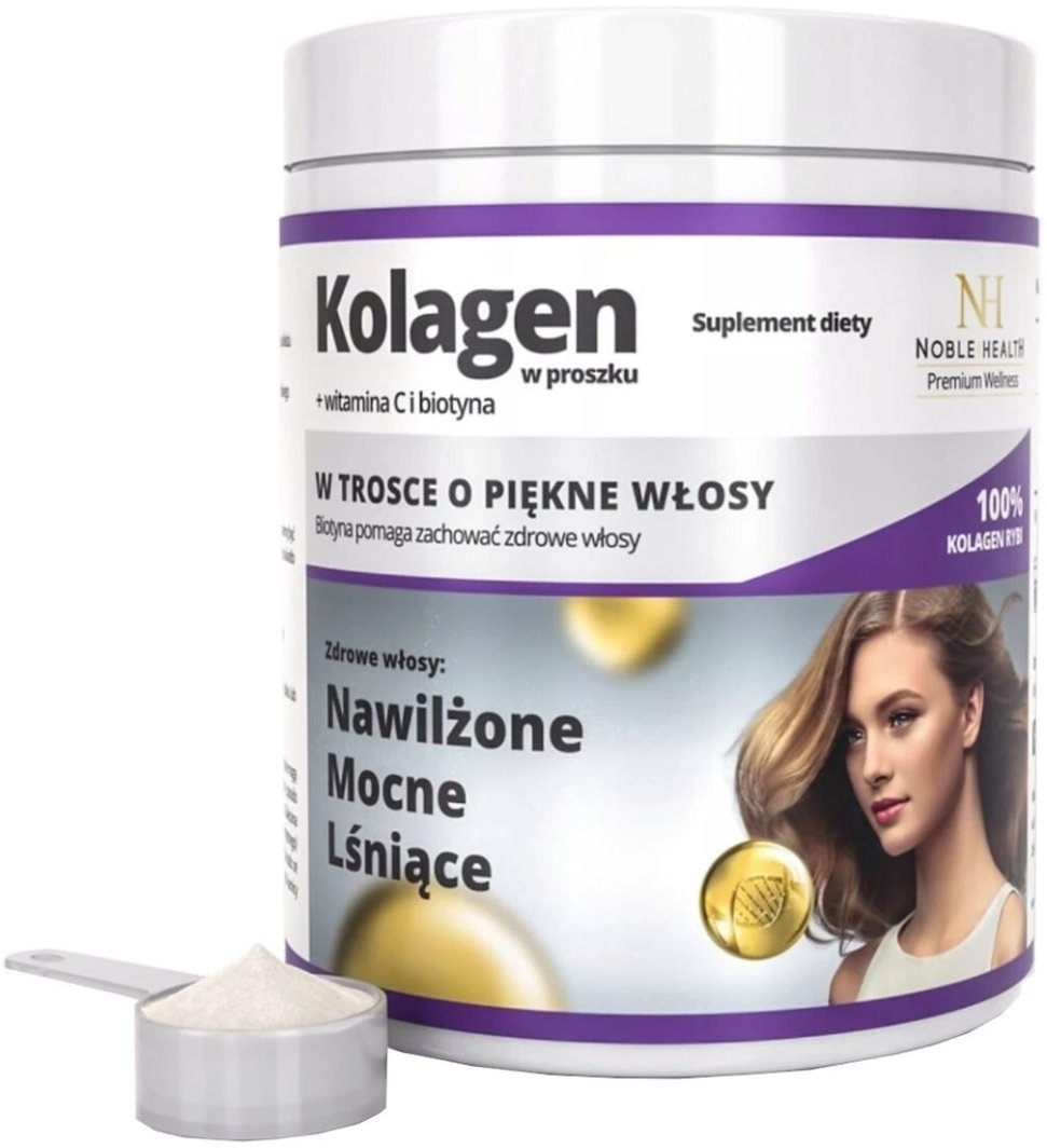 Noble Health Kolagen z Biotyną w proszku to nowoczesny suplement diety, który łączy kolagen rybi, witaminę C oraz biotynę. Ten wyjątkowy produkt został zaprojektowany z myślą o osobach, które pragną zadbać o zdrowie swojej skóry, włosów i paznokci. Dzięki starannie dobranym składnikom, suplement ten wspiera procesy regeneracyjne organizmu, przyczyniając się do poprawy elastyczności oraz kondycji skóry.