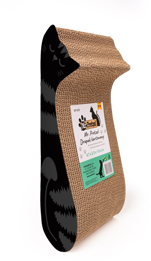 Drapak kartonowy Mr. Pretzel o wymiarach 47x22x10 cm to znakomite rozwiązanie dla właścicieli kotów, którzy pragną zapewnić swoim pupilom solidne i estetyczne miejsce do drapania. Dzięki swojej konstrukcji, ten drapak jest idealny dla kotów wszystkich ras i rozmiarów, oferując im godziny zabawy oraz zdrowego drapania.