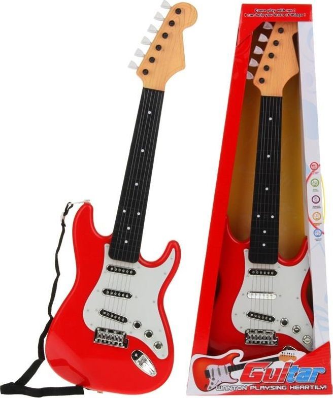 Rockowa gitara elektryczna to instrument muzyczny w postaci zabawki dla dziecka. Elektryczna gitara z rockowym brzmieniem sprawi frajdę małemu muzykowi. Gitara wykonana jest z plastiku, posiada metalowe struny oraz 3 przyciski z różnymi melodiami. Do złudzenia przypomina prawdziwą gitarę elektryczną.