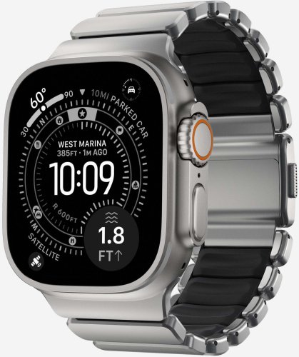 Nomad Stratos Band Titanium to wysokiej jakości hybrydowy pasek do Apple Watch, który łączy w sobie elegancję metalowego paska z komfortem elastycznego materiału FKM. Idealny zarówno do codziennego użytku, jak i do aktywności na świeżym powietrzu, ten pasek stanowi doskonały wybór dla osób prowadzących aktywny styl życia.
