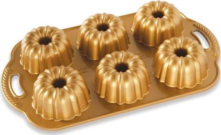6 klasycznych babeczekNajstarszy wzór Nordic Ware w złotej wersji miniNaczynie wykonano z najlepszego przewodnika ciepła - kutego aluminium, którego właściwości sprawiają, że ciasto piecze się równomiernie, zawsze z doskonałym efektem. Nieprzywieralna powłoka ułatwia wyjmowania wypieku i czyszczenie formy.Wyprodukowano w USA.Uwagi:Przed każdym użyciem należy posmarować formę tłuszczem i delikatnie posypać mąką.Przed pierwszym użyciem umyć w ciepłej wodzie z dodatkiem płynu do naczyń.Napełnić ciastem do 3/4 wysokości. Aby uzyskać idealne odwzorowanie kształtu, należy przed włożeniem do piekarnika stuknąć kilka razy formą z ciastem o blat stołu - ciasto wypełni formę dokładnie, bez pęcherzyków powietrza.Nie używać ostrych narzędzi, środków chemicznych, ostrych gąbek i zmywaków - mogą uszkodzić powierzchnię formy.Zaleca się mycie ręczne - przedłuża to żywotność warstwy nieprzywieralnej.Kolorszary, złotyMateriaĹ‚aluminiumWymiary32.9 x 21.9 x 5.1 cm. [dł. x szer. x wys.]; 1.2L [poj.]Gwarancja25 lat (producenta)