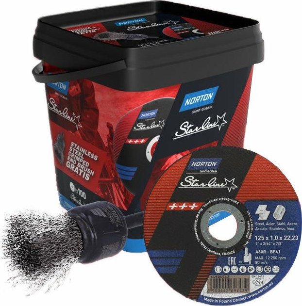 Norton TARCZA DO PRZECINANIA NORTON STARLINE A60R 125x1.0x22.23 /100 sztuk +SZCZOTKA PĘDZELKOWA