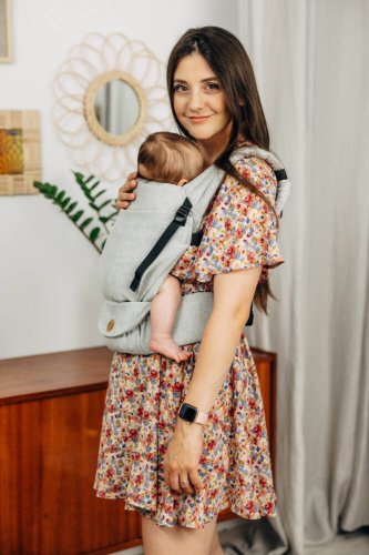 To nosidło wyróżnia się możliwością łatwego dostosowania do potrzeb rosnącego dziecka. Dzięki regulowanym pasom biodrowym i ramiennym, można je idealnie dopasować do sylwetki rodzica, co sprawia, że noszenie staje się przyjemnością. Produkt waży zaledwie 1 kg, co dodatkowo podnosi komfort użytkowania.