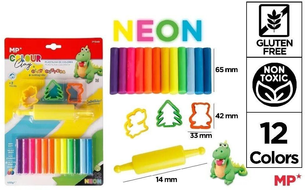 Noster Plastelina 12 kolorów neon + foremki i wałek