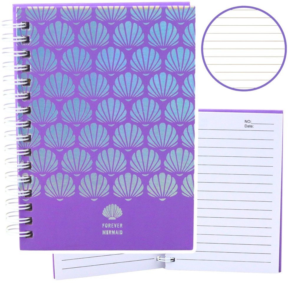Nowoczesny notatnik w formacie A6 z efektowną, holograficzną okładką ozdobioną muszelkami to doskonały wybór dla każdego, kto ceni sobie estetykę połączoną z praktycznością. Intensywnie fioletowy kolor i połyskujący nadruk sprawiają, że notatnik prezentuje się niezwykle elegancko i modnie. To idealny gadżet zarówno do szkoły, jak i do codziennego użytku w domu lub pracy.
