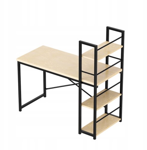 Charakterystyczny industrialny styl biurka doskonale wpisuje się w nowoczesne aranżacje wnętrz. Blat imitujący drewno nie tylko wygląda elegancko, ale także jest odporny na uszkodzenia, co sprawia, że idealnie nadaje się do pracy, grania oraz rysowania.