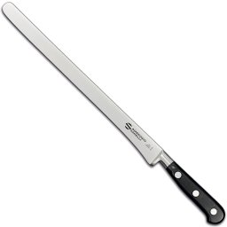 Nóż do plastrowania kuty CHEF od Ambrogio Sanelli to idealne rozwiązanie dla tych, którzy cenią sobie dokładność w kuchni. Z ostrzem o długości 290 mm, ten nóż umożliwia łatwe i precyzyjne krojenie różnych rodzajów mięsa oraz innych produktów spożywczych.