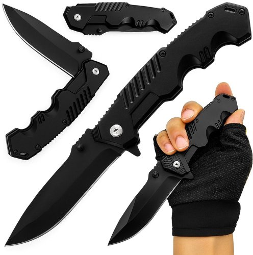 Nóż Survivalowy Taktyczny Myśliwski Składany Liner Lock Stal Czarny