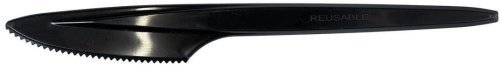 Noże wielorazowe wykonane z tworzywa w kolorze czarnym. Wytrzymałe a zarazem lekkie i wygodne sztućce wielokrotnego użytku. Można myć je w zmywarce nawet 125 razy. Nieodzowny element na stole podczas letniego grilla, garden party lub podczas pikniku. Idealnie sprawdzą się na przyjęciach urodzinowych oraz imprezach na świeżym powietrzu. Wymiar produktu: 18 cm. W opakowaniu znajduje się 8 sztuk.