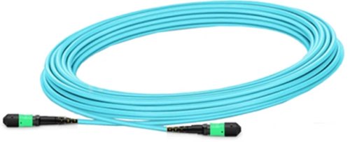 Kabel jest wyposażony w złącza MPO po obu stronach, co pozwala na szybkie i efektywne połączenia. Złącza MPO charakteryzują się wysoką wydajnością oraz łatwością w instalacji, co czyni je idealnym wyborem dla profesjonalnych zastosowań w telekomunikacji i IT.