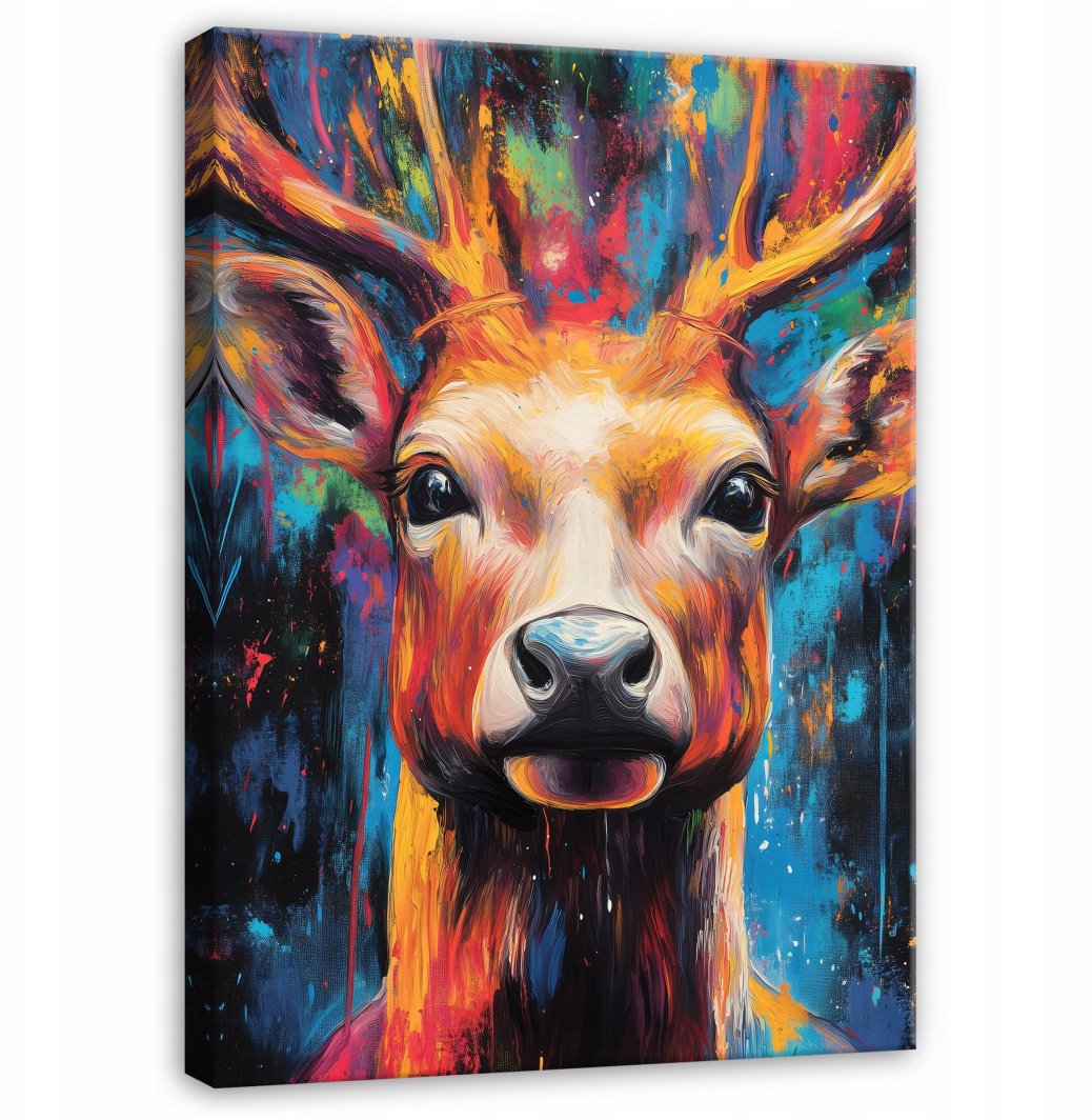 OBRAZ ABSTRAKCJA JELEŃ KOLOROWY DO SYPIALNI SALONU KUCHNI NA PŁÓTNIE 60x40