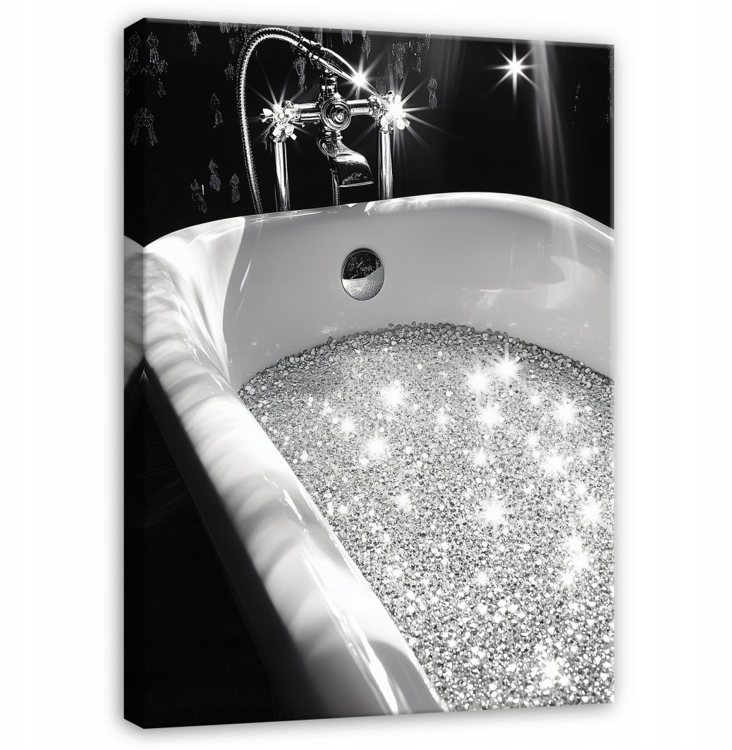 Poznaj nowoczesny obraz, który doskonale sprawdzi się w łazience, toalecie lub WC, utrzymany w eleganckiej kolorystyce czerni i srebra. Wykonany na wysokiej jakości płótnie o wymiarach 60x40 cm, ten dekoracyjny element wspaniale wkomponuje się w każde wnętrze, dodając mu stylu i charakteru. Obraz jest gotowy do zawieszenia, co czyni jego montaż niezwykle łatwym.