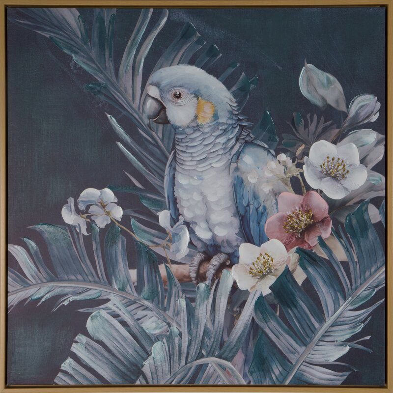 Obraz ręcznie malowany na płótnie Papuga 60X60 granatowy