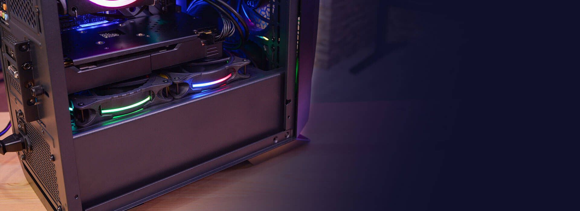 Dolny panel obsługuje 2 wentylatory 120mm, które zapewnią dodatkowe chłodzenie dla karty graficznej.