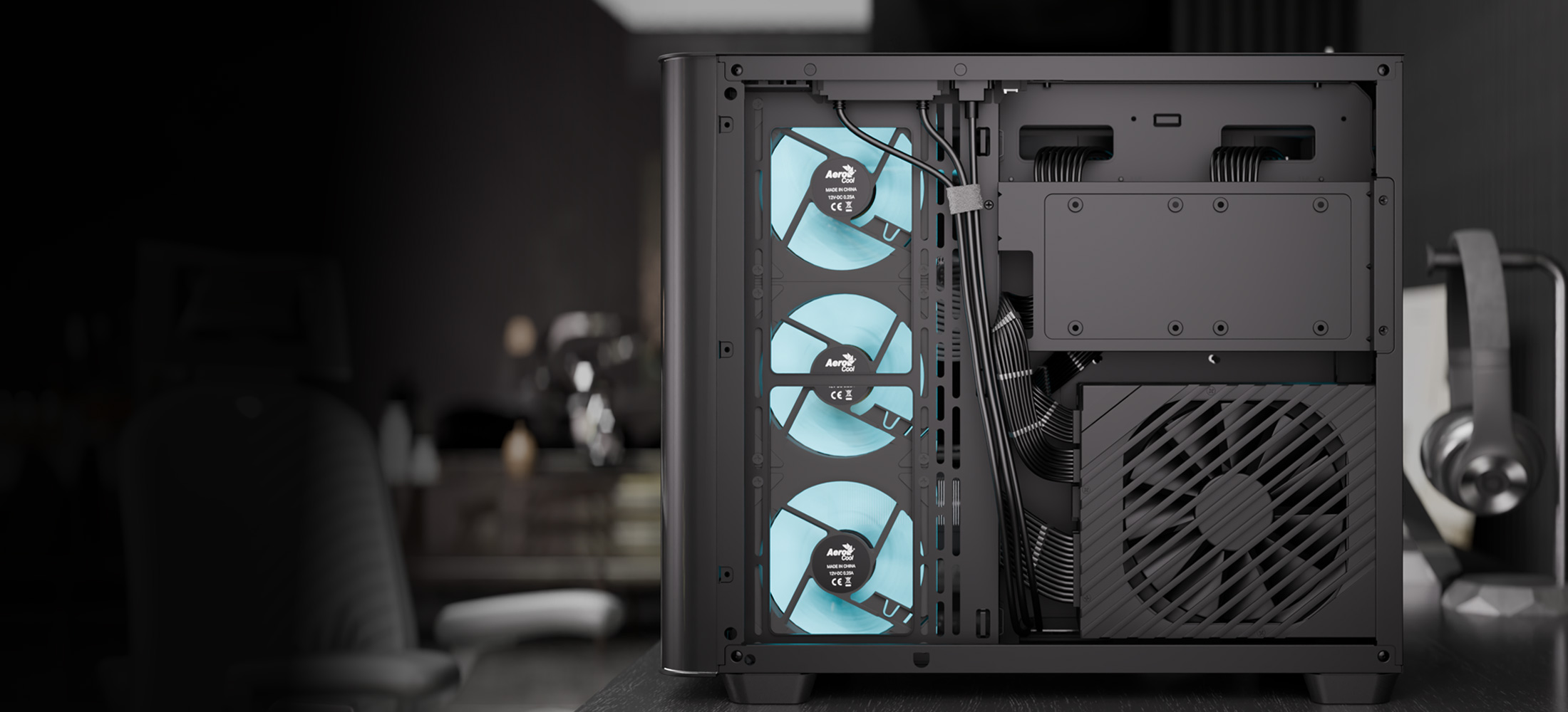 AeroCool P500C to obudowa typu mid-tower z pełnymi panelami przednimi i bocznymi z hartowanego szkła, zapewniającymi zachwycający widok wnętrza, uzupełniona czterema fabrycznie zainstalowanymi wentylatorami ARGB (w tym trzema z odwróconymi łopatkami) z unikalnym efektem świetlnym „mirage” infinity mirror. Oferuje wszechstronne opcje chłodzenia, obsługując konfiguracje chłodzenia powietrzem i cieczą do 360 mm, a także zawiera 4-portowy hub wentylatorów PWM ARGB dla lepszej wydajności. Zaprojektowana dla płyt głównych ATX, micro-ATX i mini-ITX, obudowa P500C obsługuje wysokiej klasy karty graficzne do 450 mm, chłodzenie procesora do 162 mm i zapewnia dużą przestrzeń dyskową dzięki trzem gniazdom SSD i dwóm wnękom na dyski HDD, a jednocześnie zapewnia łatwą konserwację dzięki górnym i dolnym filtrom magnetycznym.