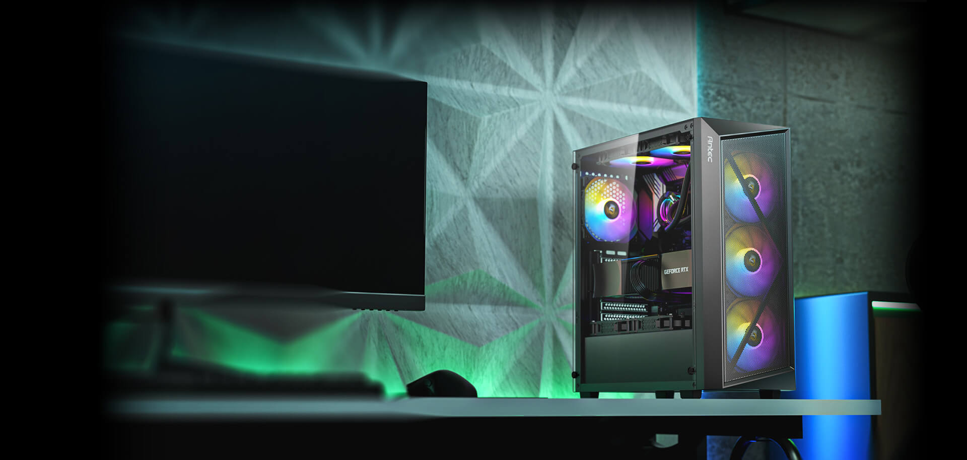 Antec AX67 Black ARGB to idealne połączenie stylu i wydajności. Jej geometryczny front z siatki mesh zapewnia potężny przepływ powietrza, a cztery dołączone wentylatory ARGB tworzą zjawiskowe widowisko świetlne. Wyeksponuj swoje komponenty przez panel z hartowanego szkła i ciesz się niskimi temperaturami nawet podczas najcięższych sesji gamingowych.