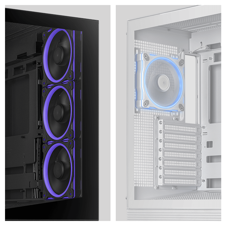 Wydajne wentylatory – 1 x 120 mm z tyłu i 3 x 120 mm z boku