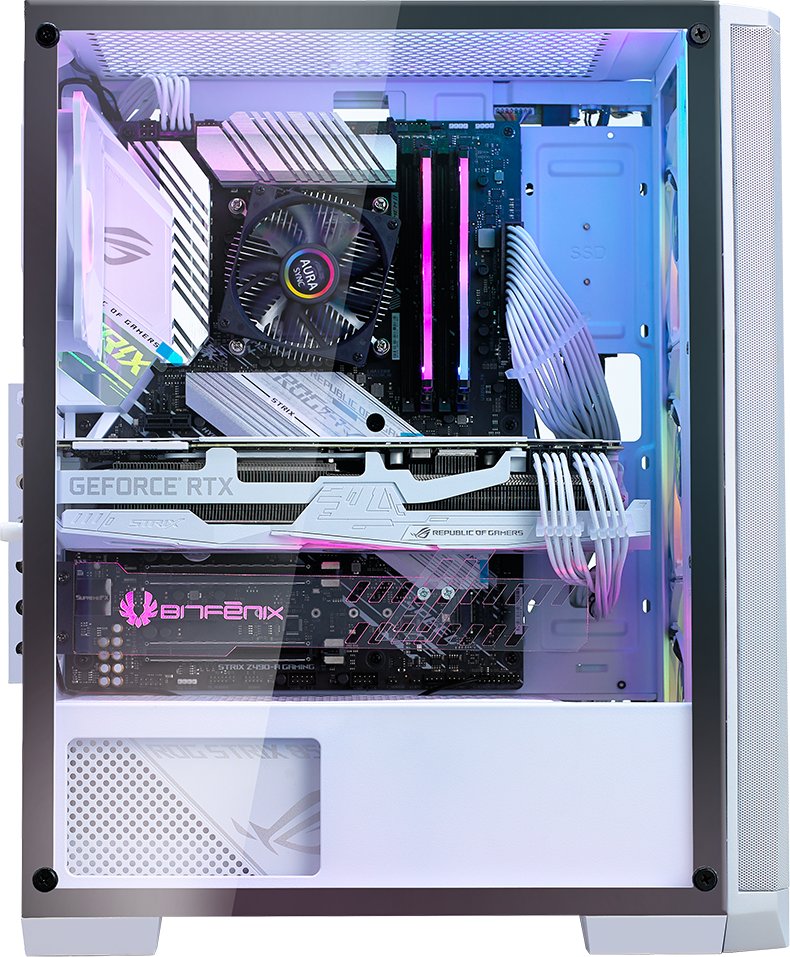 Ta obudowa jest nieco zmodyfikowaną wersją prostej, ale stylowej obudowy Nova Mesh, z dodatkowym naciskiem na chłodzenie powietrzem. W tym wariancie zastosowano sekcję przednią, która składa się wyłącznie z metalowej kratki o drobnej siatce i filtra przeciwpyłowego, aby umożliwić maksymalny możliwy przepływ powietrza. Panel przedni zawiera typowe logo BitFenix z przodu i zawiera trzy fabrycznie zainstalowane wentylatory 120 mm z adresowanym cyfrowo oświetleniem LED RGB, z dodatkowym umieszczonym z tyłu. Bitfenix Nova Mesh oferuje dużo miejsca dla większości popularnych konfiguracji.