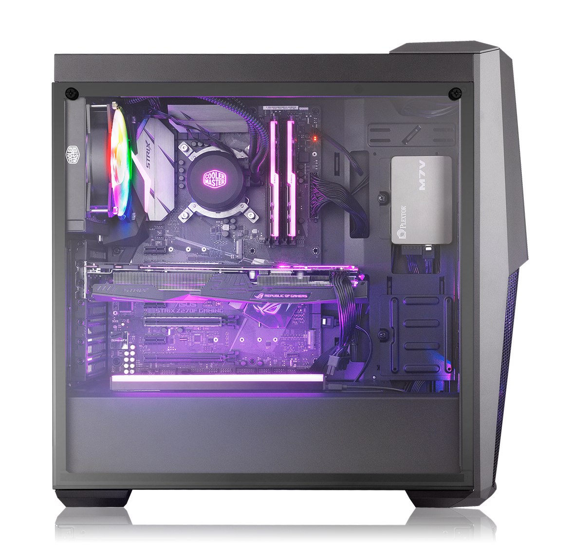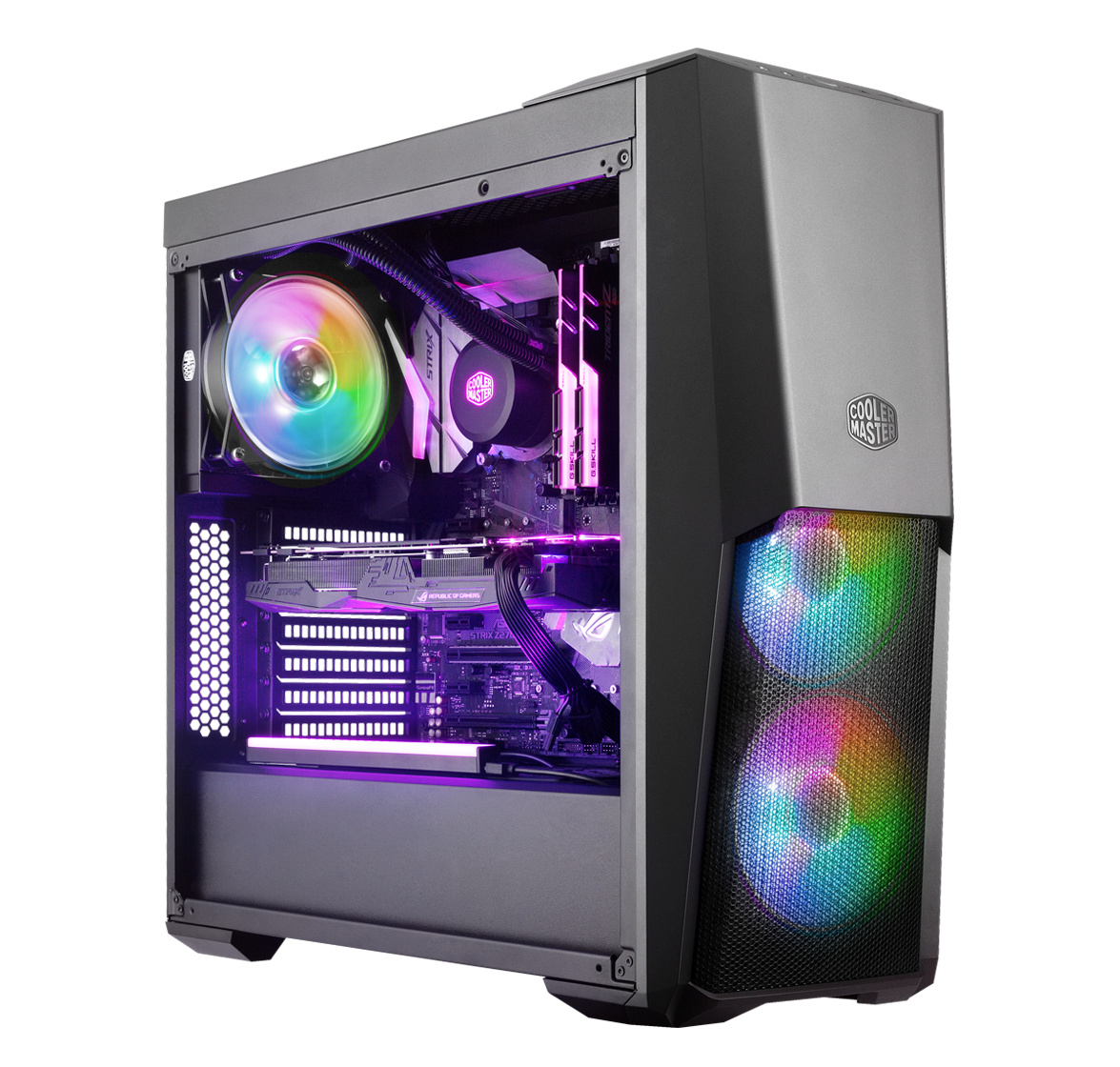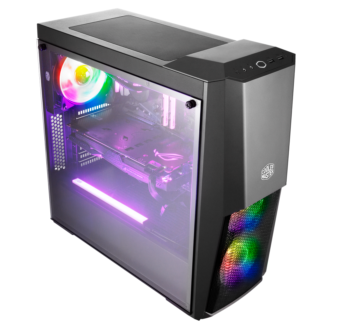 MasterBox MB500 ARGB stosuje wysokiej jakości oświetlenie w obudowie zorientowanej na przepływ powietrza. Pół-siatkowy panel przedni, wentylacja panelu górnego i dwukomorowe wnętrze optymalizują przepływ powietrza, aby skutecznie chłodzić systemy do gier pod dużym obciążeniem. Dzięki trzem wentylatorom ARGB i bocznemu panelowi ze szkła hartowanego wszystko, co zostało zbudowane w MasterBox MB500 ARGB, jest odpowiednio eksponowane.