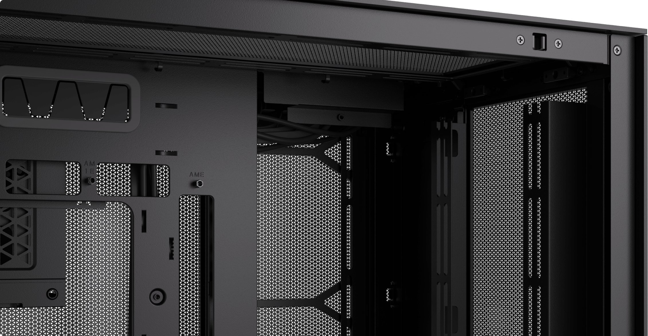 Wyeksponuj swój najbardziej estetyczny i uporządkowany zestaw w jednej komorze wyposażonej w liczne mocowania do wentylatorów i radiatorów, a kable, napędy pamięci masowej i zasilacz schowaj w drugiej komorze.