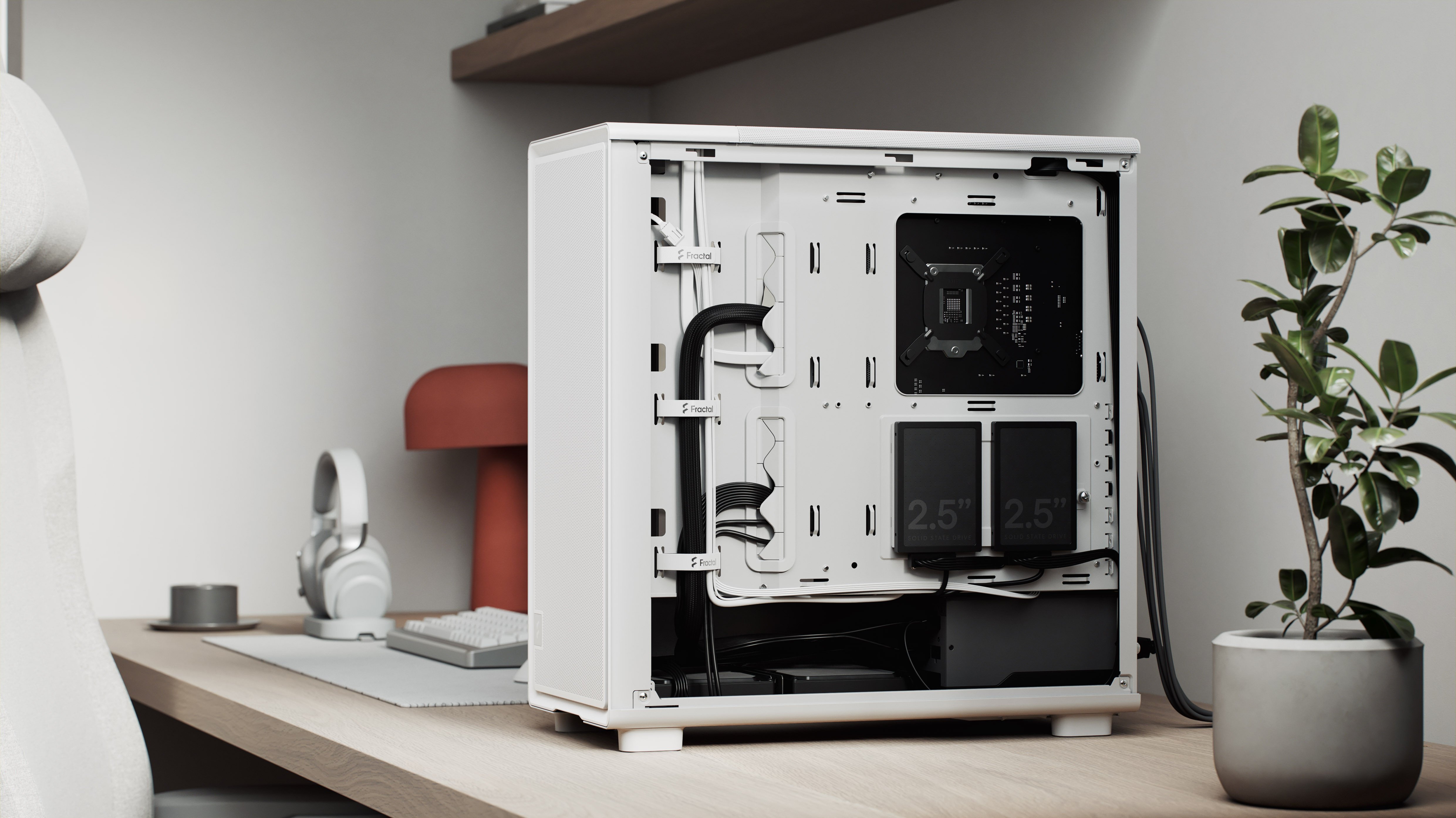 Uzyskaj schludny i uporządkowany wygląd dzięki przejrzystemu układowi wnętrza, przelotkom do prowadzenia kabli i stałym opaskom, które pomogą utrzymać kable w porządku.