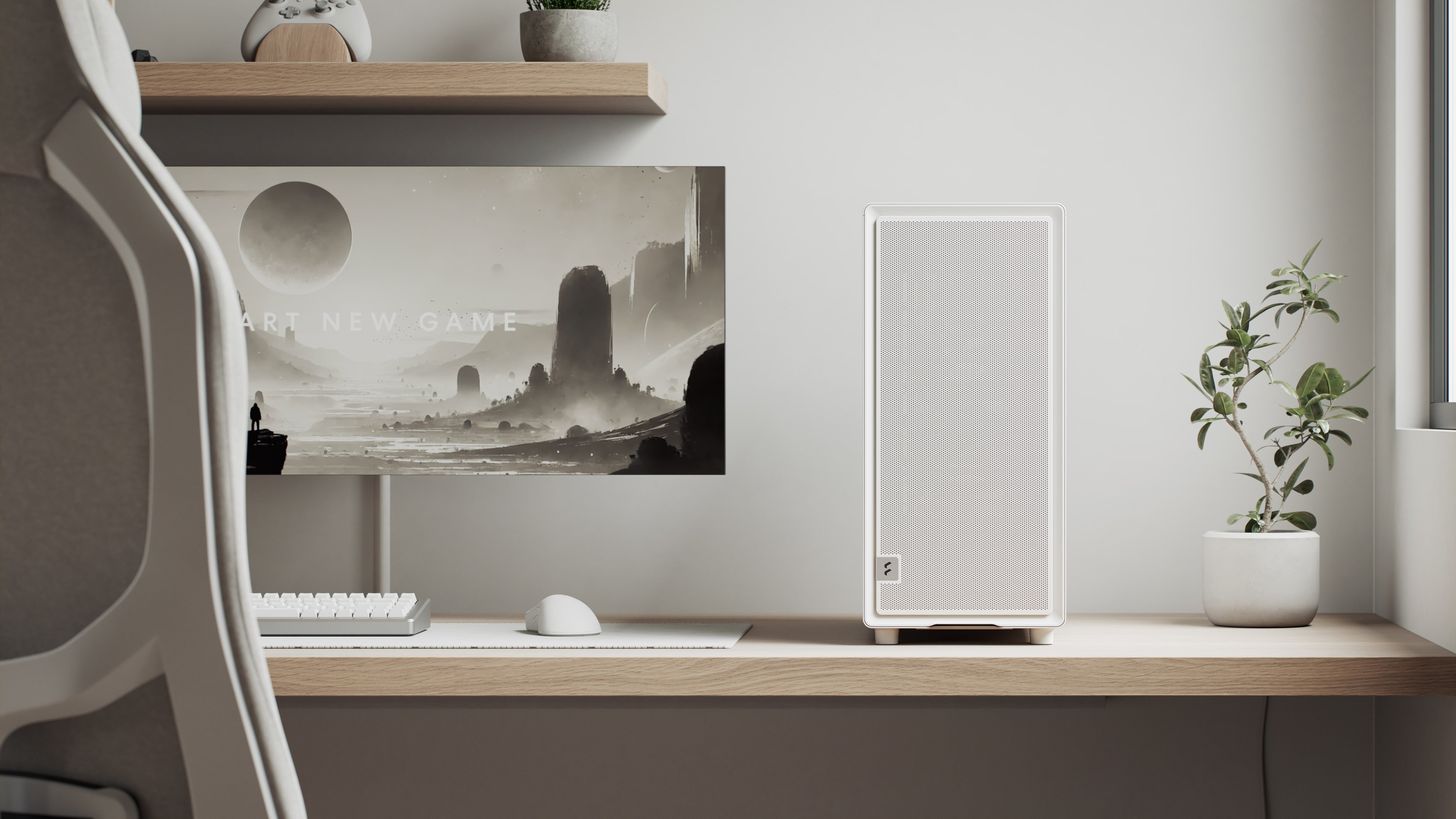 Zintegruj swój sprzęt bezproblemowo ze stanowiskiem do gier dzięki czystym liniom, uporządkowanemu wnętrzu i dopracowanym detalom, takim jak laserowo grawerowany aluminiowy emblemat.