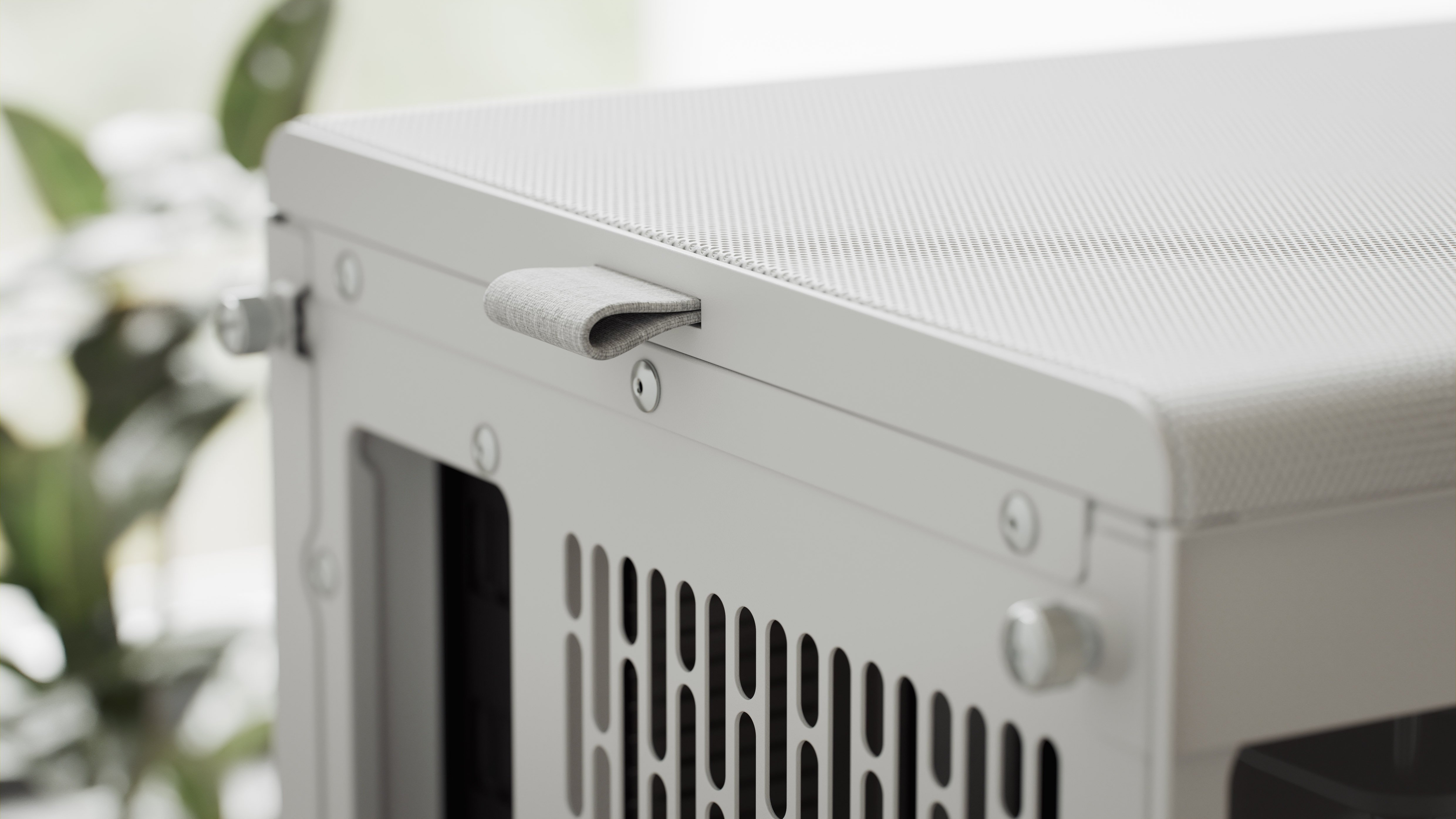 Ciesz się płynnym montażem dzięki dostępowi bez użycia narzędzi, w tym panelowi przedniemu, który można zdjąć, oraz przesuwanemu panelowi górnemu z materiałową zakładką.