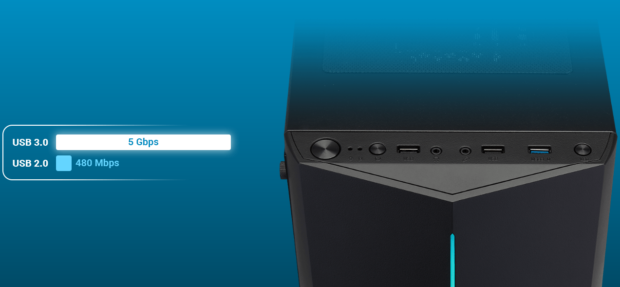 Aby zapewnić łatwy i wygodny dostęp do wszystkich często używanych urządzeń, CMT150 jest wyposażony w bogaty interfejs I/O, który obejmuje 1 x USB 3.0, 2x USB 2.0, przycisk zasilania i porty audio HD.