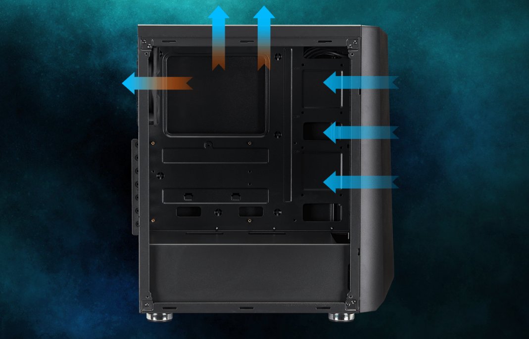 CMT150 jest wyposażony we wstępnie zainstalowany wentylator 120 mm z tyłu i umożliwia zamontowanie do pięciu dodatkowych wentylatorów w celu uzyskania maksymalnej wydajności chłodzenia.